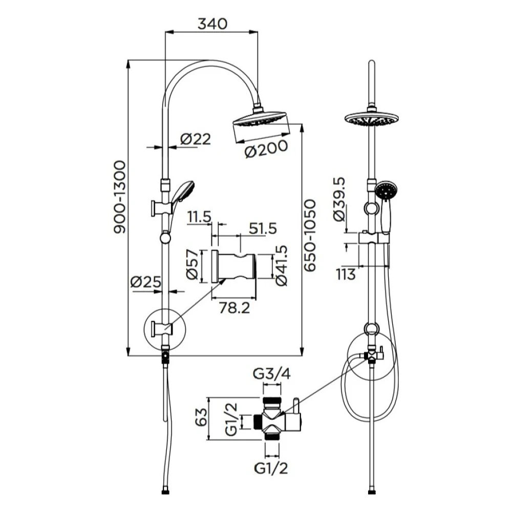 | Allestimento | Doccia d.70 mm e Soffione d.200 mm |